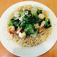 H15. Crispy Egg Noodle w Seafood, Shrimp, Calamari, Fish Ball & Mixed Vegetable